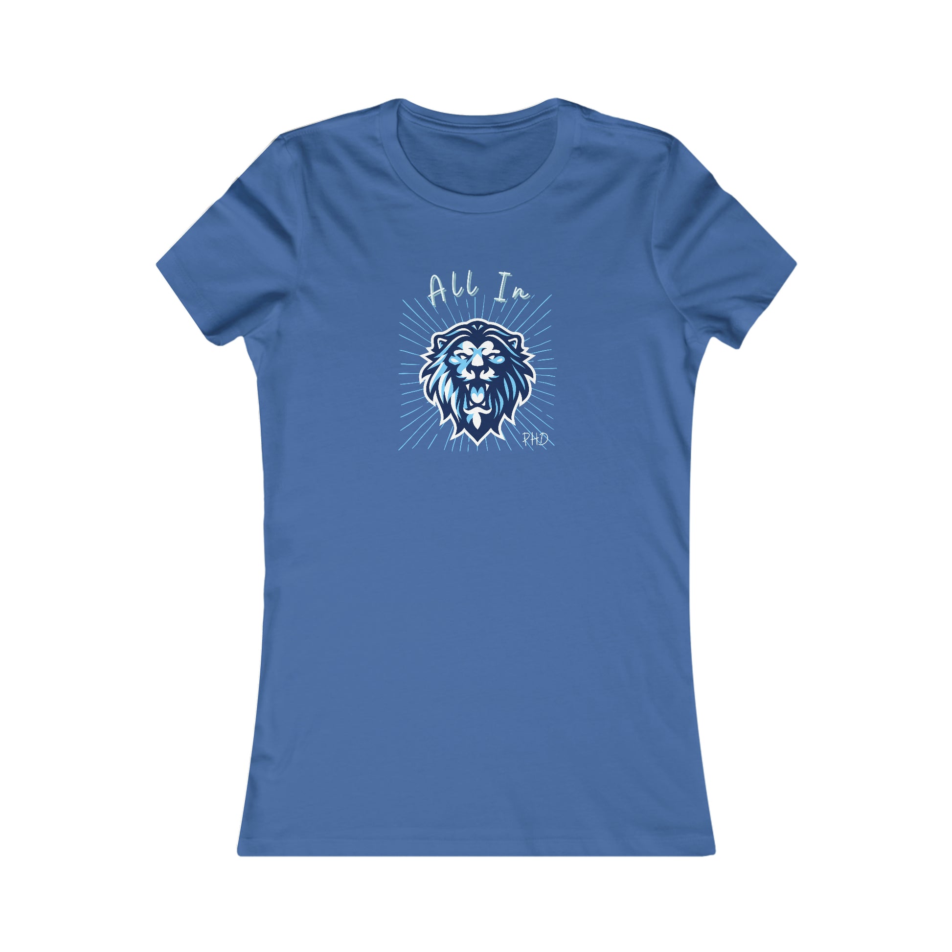 All In PHD - Blue Roaring Lion - Colored T - Women's Slim Fit * Runs Small - on front